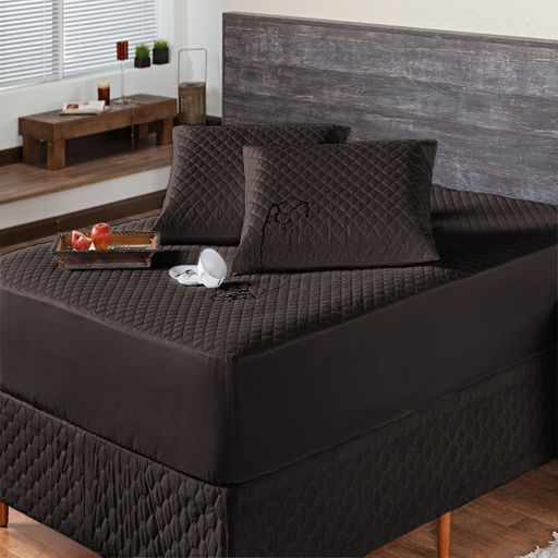O Protetor de Colchão é matelado e impermeável. Confeccionado em tecido na parte superior 100% poliéster microfibra, na parte interna 50% polietileno e 50% polipropileno, enchimento 100% poliéster, e na parte inferior 100% polipropileno.